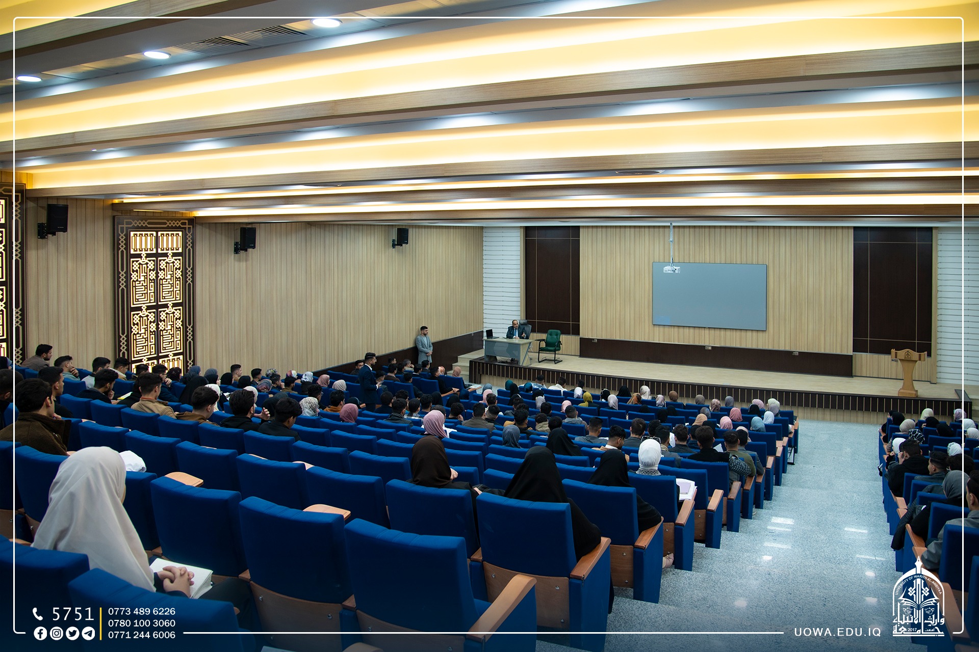 The University of Warith Al-Anbiyaa (Peace Be Upon Him), in collaboration with the Human Resources Development Department at the Holy Shrine of Imam Hussain, organizes a scientific seminar titled "Non-religious Globalization." The seminar is presented by Dr. Mazhar Qasim, a prominent media figure.